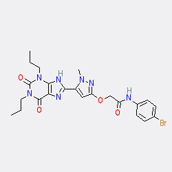 | SMILES | CCCn1c(=O)c2nc(-c3cc(OCC(=O)Nc4ccc(Br)cc4)nn3C)[nH]c2n(CCC)c1=O |