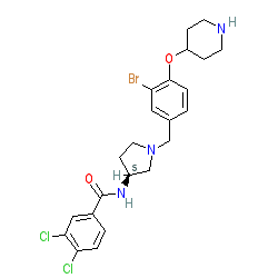| SMILES | Brc1cc(ccc1OC1CCNCC1)CN1CC[C@@H](C1)NC(=O)c1ccc(c(c1)Cl)Cl |