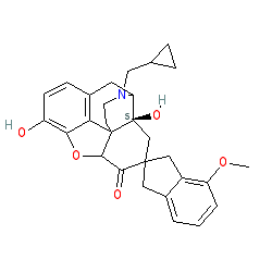 | SMILES | COc1cccc2c1CC1(C2)C[C@@]2(O)C3Cc4ccc(O)c5c4C2(CCN3CC2CC2)C(O5)C1=O |