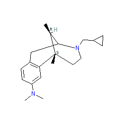 | SMILES | C[C@H]1C2Cc3ccc(N(C)C)cc3[C@@]1(C)CCN2CC1CC1 |