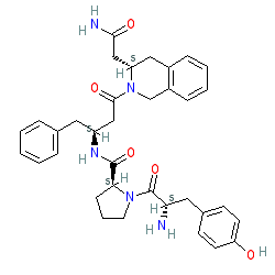 | SMILES | NC(=O)C[C@@H]1Cc2ccccc2CN1C(=O)C[C@H](Cc1ccccc1)NC(=O)[C@@H]1CCCN1C(=O)[C@@H](N)Cc1ccc(O)cc1 |
