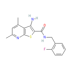 | SMILES | Cc1cc(C)c2c(N)c(C(=O)NCc3ccccc3F)sc2n1 |