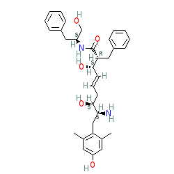 | SMILES | Cc1cc(O)cc(C)c1C[C@H](N)[C@@H](O)C/C=C/[C@H](O)[C@@H](Cc1ccccc1)C(=O)N[C@H](CO)Cc1ccccc1 |