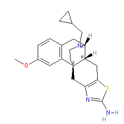 | SMILES | COc1ccc2c(c1)[C@]13CCN(CC4CC4)[C@H](C2)[C@@H]1Cc1sc(N)nc1C3 |