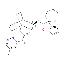 | SMILES | Cc1ccnc(NC(=O)C[N+]23CCC(CC2)[C@@H](OC(=O)C2(C4=CC=CC4)CCCCCC2)C3)c1 |