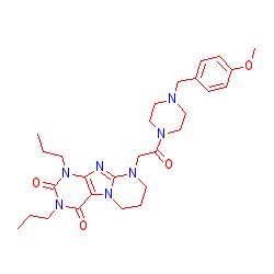 | SMILES | CCCn1c(=O)c2c(nc3n2CCCN3CC(=O)N2CCN(Cc3ccc(OC)cc3)CC2)n(CCC)c1=O |