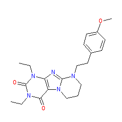 | SMILES | CCn1c(=O)c2c(nc3n2CCCN3CCc2ccc(OC)cc2)n(CC)c1=O |