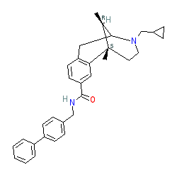 | SMILES | C[C@H]1C2Cc3ccc(C(=O)NCc4ccc(-c5ccccc5)cc4)cc3[C@@]1(C)CCN2CC1CC1 |