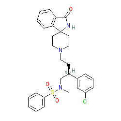 | SMILES | CN(C[C@@H](CCN1CCC2(CC1)NC(=O)c1ccccc12)c1cccc(Cl)c1)S(=O)(=O)c1ccccc1 |
