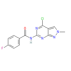 | SMILES | Cn1cc2c(Cl)nc(NC(=O)c3ccc(F)cc3)nc2n1 |