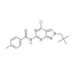 | SMILES | Cc1ccc(C(=O)Nc2nc(Cl)c3cn(CC(C)(C)C)nc3n2)cc1 |