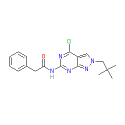 | SMILES | CC(C)(C)Cn1cc2c(Cl)nc(NC(=O)Cc3ccccc3)nc2n1 |