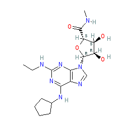 | SMILES | CCNc1nc(NC2CCCC2)c2ncn([C@@H]3O[C@H](C(=O)NC)[C@@H](O)[C@H]3O)c2n1 |