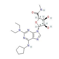 | SMILES | CCN(CC)c1nc(NC2CCCC2)c2ncn([C@@H]3O[C@H](C(=O)NC)[C@@H](O)[C@H]3O)c2n1 |