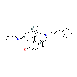 | SMILES | C[C@@H]1CN(CCCc2ccccc2)[C@H]2C[C@H](NCC3CC3)C[C@]1(c1cccc(O)c1)C2 |