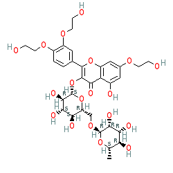 | SMILES | C[C@@H]1O[C@@H](OC[C@H]2O[C@@H](Oc3c(-c4ccc(OCCO)c(OCCO)c4)oc4cc(OCCO)cc(O)c4c3=O)[C@H](O)[C@@H](O)[C@@H]2O)[C@H](O)[C@H](O)[C@H]1O |