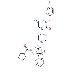 | SMILES | C=CCN(C(=O)NCc1ccc(F)cc1)C1CCN(C[C@H]2CN(C(=O)C3CCCC3)C[C@]2(O)c2ccccc2)CC1 |
