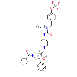 | SMILES | C=CCN(C(=O)NCc1ccc(OC(F)(F)F)cc1)C1CCN(C[C@H]2CN(C(=O)C3CCCC3)C[C@]2(O)c2ccccc2)CC1 |