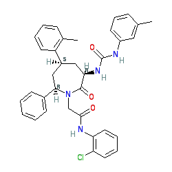 | SMILES | Cc1cccc(NC(=O)N[C@@H]2C[C@H](c3ccccc3C)C[C@H](c3ccccc3)N(CC(=O)Nc3ccccc3Cl)C2=O)c1 |