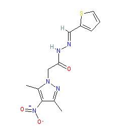 | SMILES | Cc1nn(CC(=O)N/N=C/c2cccs2)c(C)c1[N+](=O)[O-] |