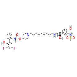 | SMILES | CS(=O)(=O)Nc1cc([C@@H](O)CNCCCCCCCCCN2CCC(OC(=O)Nc3ccccc3-c3cc(F)cc(F)c3O)CC2)ccc1O |