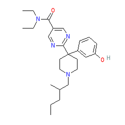 | SMILES | CCCC(C)CN1CCC(c2cccc(O)c2)(c2ncc(C(=O)N(CC)CC)cn2)CC1 |