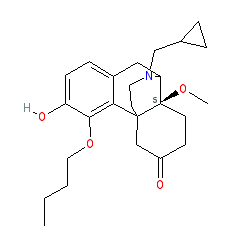 | SMILES | CCCCOc1c(O)ccc2c1C13CCN(CC4CC4)C(C2)[C@]1(OC)CCC(=O)C3 |