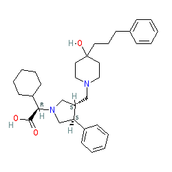 | SMILES | O=C(O)[C@@H](C1CCCCC1)N1C[C@H](CN2CCC(O)(CCCc3ccccc3)CC2)[C@@H](c2ccccc2)C1 |