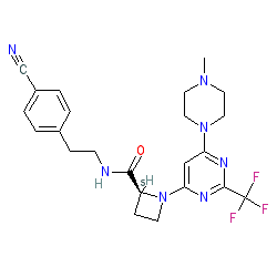 | SMILES | CN1CCN(c2cc(N3CC[C@H]3C(=O)NCCc3ccc(C#N)cc3)nc(C(F)(F)F)n2)CC1 |