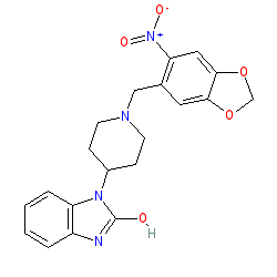 | SMILES | O=[N+]([O-])c1cc2c(cc1CN1CCC(n3c(O)nc4ccccc43)CC1)OCO2 |