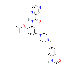 | SMILES | CC(=O)Nc1ccc(CN2CCN(c3ccc(OC(C)C)c(NC(=O)c4cnccn4)c3)CC2)cc1 |