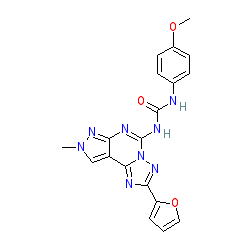 | SMILES | COc1ccc(NC(=O)Nc2nc3nn(C)cc3c3nc(-c4ccco4)nn23)cc1 |