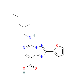 | SMILES | CCCCC(CC)CNc1ncc(C(=O)O)c2nc(-c3ccco3)nn12 |