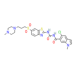 | SMILES | CN1CCN(CCCS(=O)(=O)c2ccc3nc(NC(=O)NC(=O)c4cc5c(ccn5C)cc4Cl)sc3c2)CC1 |