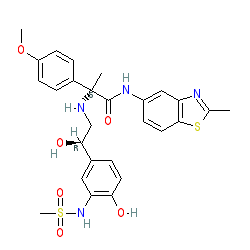| SMILES | COc1ccc([C@](C)(NC[C@H](O)c2ccc(O)c(NS(C)(=O)=O)c2)C(=O)Nc2ccc3sc(C)nc3c2)cc1 |