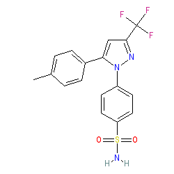 | SMILES | Cc1ccc(-c2cc(C(F)(F)F)nn2-c2ccc(S(N)(=O)=O)cc2)cc1 |