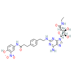 | SMILES | CCNC(=O)[C@H]1O[C@@H](n2cnc3c(N)nc(NCCc4ccc(CCC(=O)Nc5ccc(O)c([N+](=O)[O-])c5)cc4)nc32)[C@H](O)[C@@H]1O |