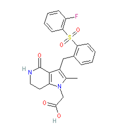 | SMILES | Cc1c(Cc2ccccc2S(=O)(=O)c2ccccc2F)c2c(n1CC(=O)O)CCNC2=O |
