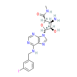 | SMILES | CNC(=O)[C@H]1O[C@@H](n2cnc3c(NCc4cccc(I)c4)ncnc32)[C@H](O)[C@@H]1N |