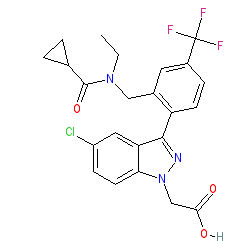 | SMILES | CCN(Cc1cc(C(F)(F)F)ccc1-c1nn(CC(=O)O)c2ccc(Cl)cc12)C(=O)C1CC1 |