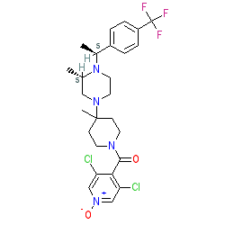 | SMILES | C[C@H]1CN(C2(C)CCN(C(=O)c3c(Cl)c[n+]([O-])cc3Cl)CC2)CCN1[C@@H](C)c1ccc(C(F)(F)F)cc1 |