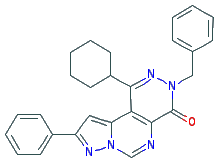 | SMILES | O=c1c2ncn3nc(-c4ccccc4)cc3c2c(C2CCCCC2)nn1Cc1ccccc1 |