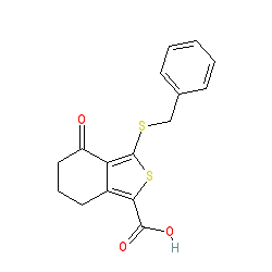 | SMILES | O=C(O)c1sc(SCc2ccccc2)c2c1CCCC2=O |