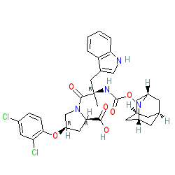 | SMILES | C[C@](Cc1c[nH]c2ccccc12)(NC(=O)ON1[C@H]2C[C@@H]3C[C@@H](C[C@H]1C3)C2)C(=O)N1C[C@H](Oc2ccc(Cl)cc2Cl)C[C@@H]1C(=O)O |