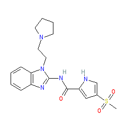 | SMILES | CS(=O)(=O)c1c[nH]c(C(=O)Nc2nc3ccccc3n2CCN2CCCC2)c1 |