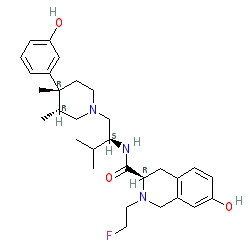 | SMILES | CC(C)[C@@H](CN1CC[C@@](C)(c2cccc(O)c2)[C@@H](C)C1)NC(=O)[C@H]1Cc2ccc(O)cc2CN1CCF |