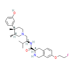 | SMILES | CC(C)[C@@H](CN1CC[C@@](C)(c2cccc(O)c2)[C@@H](C)C1)NC(=O)[C@H]1Cc2ccc(OCCF)cc2CN1 |