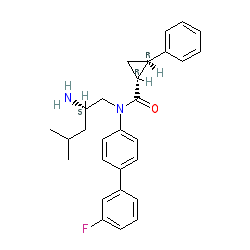 | SMILES | CC(C)C[C@H](N)CN(C(=O)[C@@H]1C[C@H]1c1ccccc1)c1ccc(-c2cccc(F)c2)cc1 |