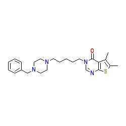 | SMILES | Cc1sc2ncn(CCCCCN3CCN(Cc4ccccc4)CC3)c(=O)c2c1C |