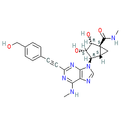 | SMILES | CNC(=O)[C@@]12C[C@@H]1[C@@H](n1cnc3c(NC)nc(C#Cc4ccc(CO)cc4)nc31)[C@H](O)[C@@H]2O |
